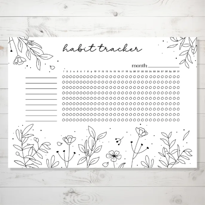 Monthly Floral Coloring Habit Tracker Sticker