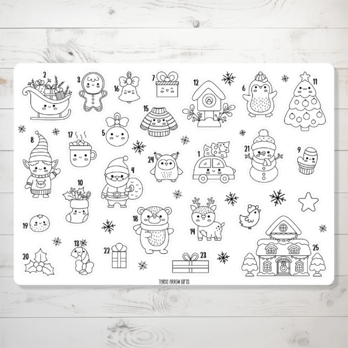 Kids Coloring Christmas Countdown Advent Stickers