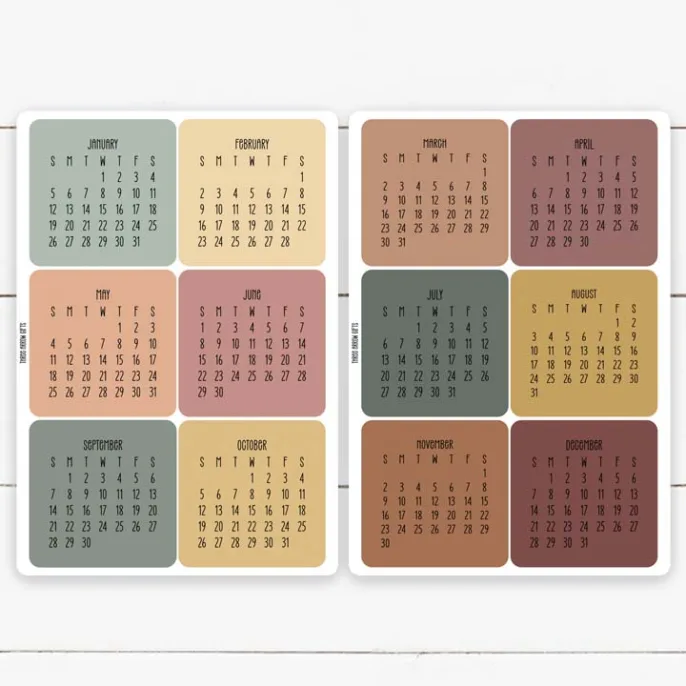 Year at a Glance 2025 Calendar Sticker Sheet – Autumn Boho