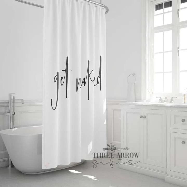 Add a personal touch to your bathroom with a simple Get Naked shower curtain.
